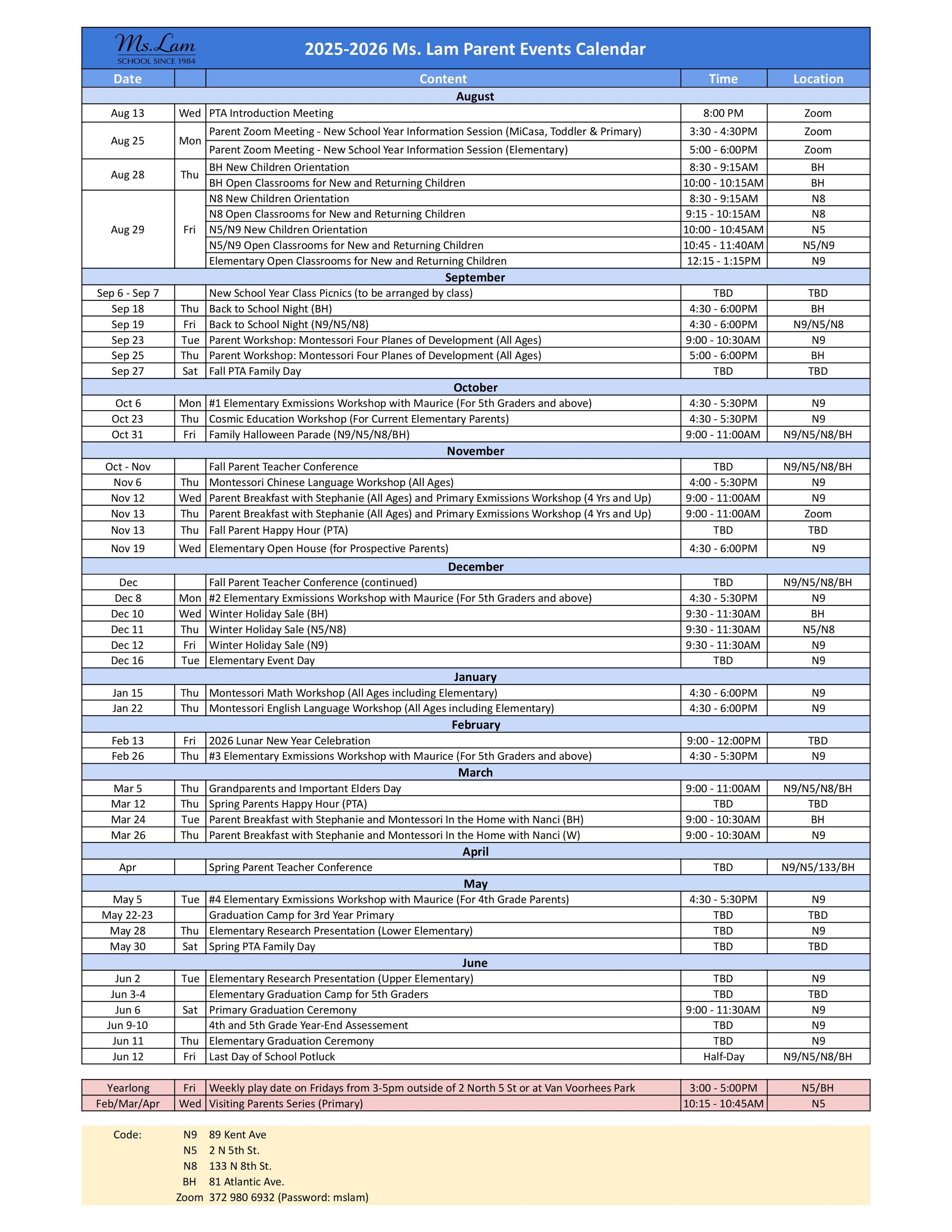 Parent Event Calendar