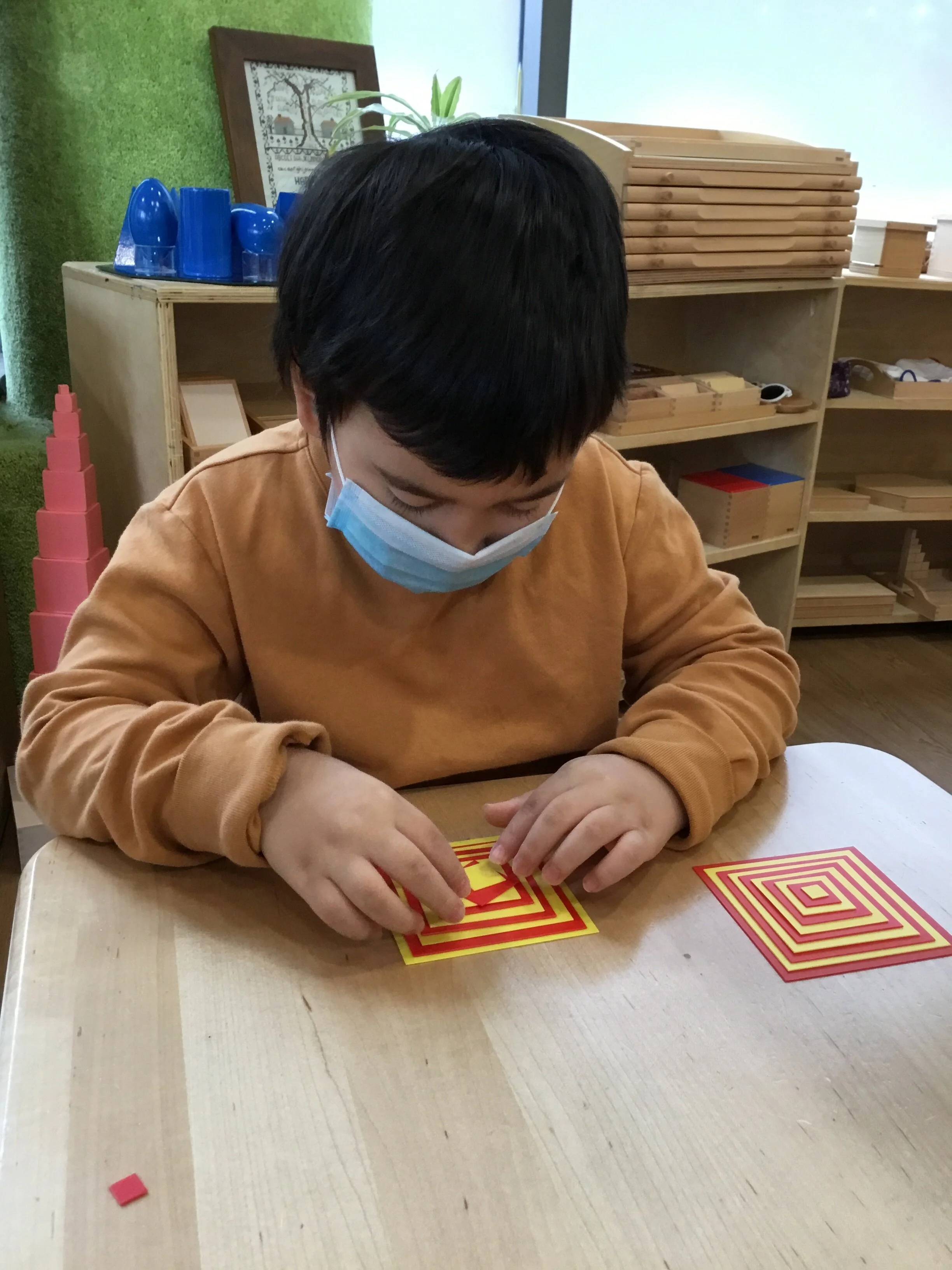 Sensorial May 28 Written By Stephanie Woo Sensorial area of the classroom directly prepares the child for math and geometry: View fullsize Mia works with music bells View fullsize Sonia writes a song on the staff View fullsize Cosmo works on Superimposed Geometric Figures View fullsize Mikael works on Superimposed Geometric Figures < Back to Third Year Primary< Back to Parent Portal Homepage Stephanie Woo